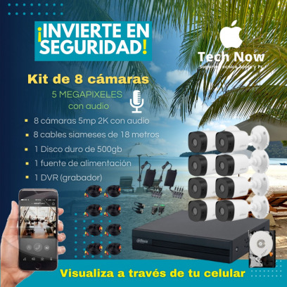 Kit de 8 Canales de 5 MP/ DVR Cooper-I WizSense/ Con IA/ H.265+/ 8 Camaras de 5 Megapixeles microfono integrado/ 8 Ch + 2 IP o Hasta 10 Ch IP/ 4 Ch SMD Plus/ Busqueda de Humanos y Vehiculos/ Accesorios Incluidos/